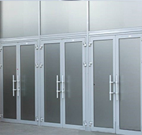 - Раздвижные двери – компактные конструкции с параллельно-/подъемно-/наклонно-сдвижной системой открывания, способной выдерживать общий вес створок до 400 кг;